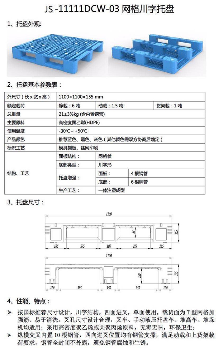2、塑料托盤產(chǎn)品尺寸誤差正負(fù)2%,重量誤差正負(fù)3%,均屬于企業(yè)標(biāo)準(zhǔn)允許的范圍。